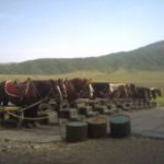 阿蘇草千里の雄大な草原を馬に乗って見学できますがただいま空いています。馬も休憩中です