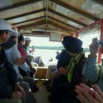水牛車に乗って、由布島へ渡ります!! 約10分。 水牛使いのおじいが弾く三線の音色に合わせて、皆で安里屋ユンタを歌っています!! 遠浅の...