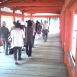 厳島神社をガイドの案内で散策中この後もみじまんじゅうの試食とお買い物です
