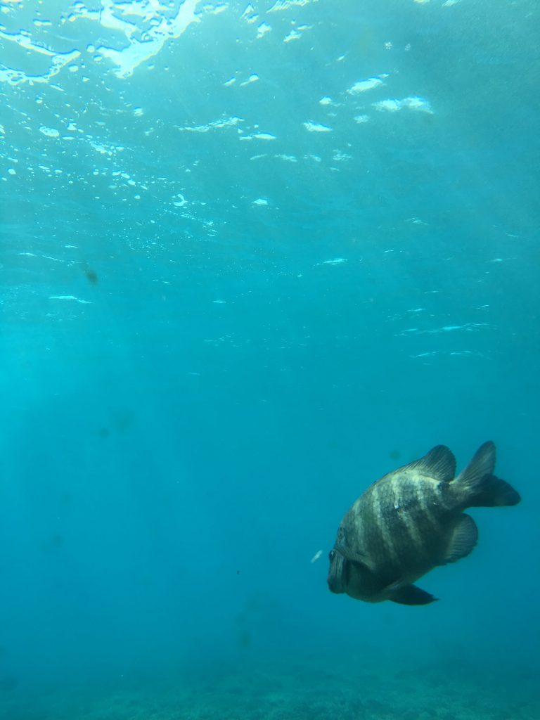 佐和田の浜。ここは、大津波により運ばれた巨岩が点在する浜です。海の透明度が![]()