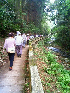 小川のせせらぎを聞きながら、新緑のアーチをくぐります。