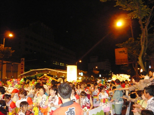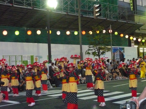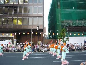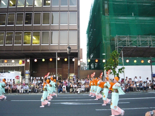 約30分間でしたが、華やかな祭り会場で、少しだけ踊り手の雰囲気を味わうことができました。この日花傘パレードに参加したのは42団体3359人とのこと。私たちの宿泊ホテルは祭りパレードのスタート地点に位置していましたので、踊り手さんの準備の様子がよくわかりました。