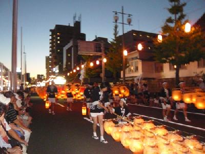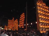提灯を稲穂に見立てた約12mの竿燈を手・肩・額・腰などで支え、妙技を競い五穀豊穣を願う祭りです。