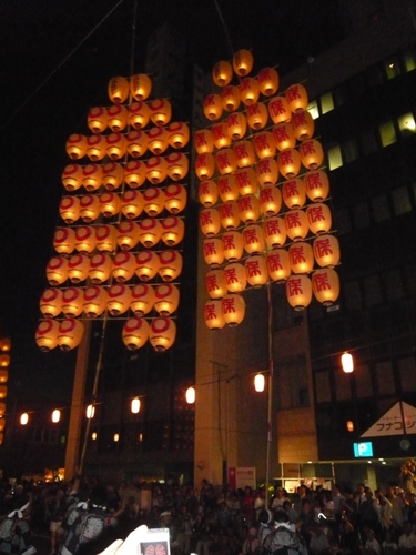 竿燈の重さは50キロ以上とか・・・・これを手のひらや肩に乗せてバランスを取るのです。