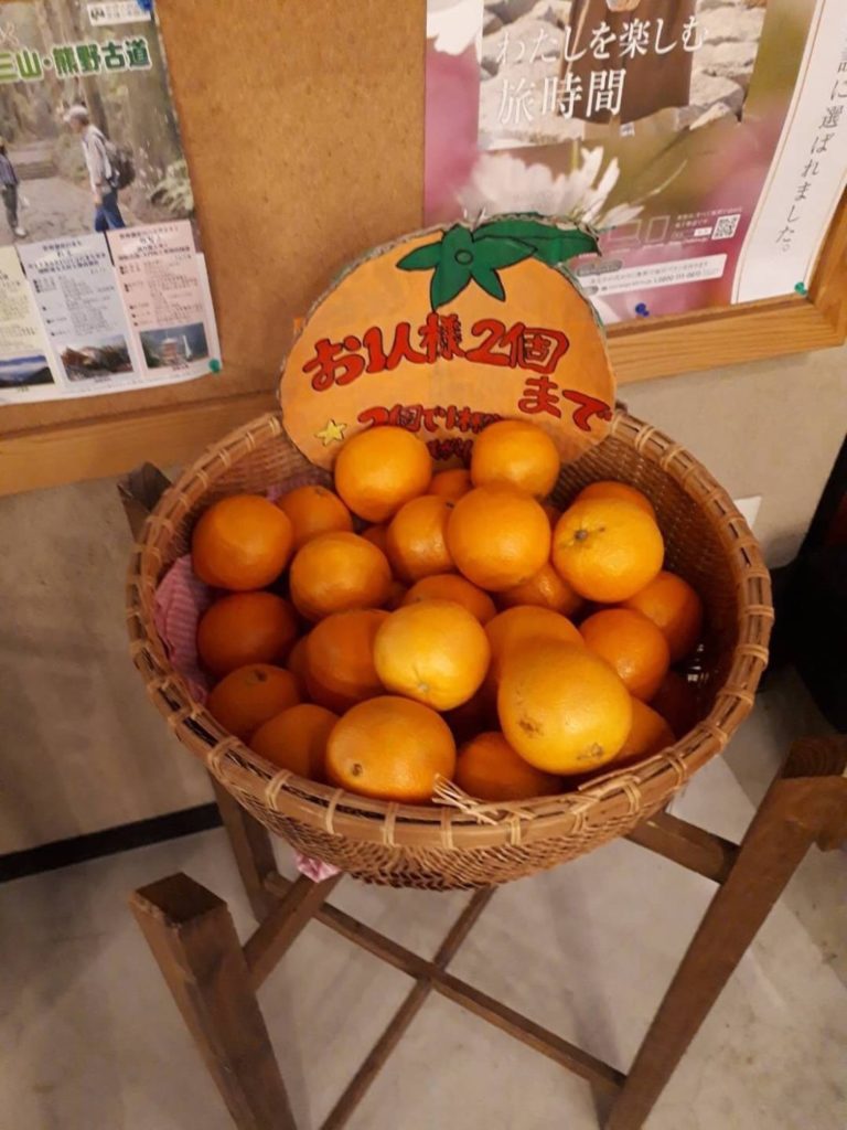 フロント横には、みかんの搾りたてを自分で作って飲むことができます![]()