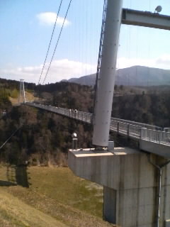 一週間ぶりの 晴天に恵まれた 九州の旅 2009/3/2 添乗員の旅ブログ 大分件九重にあり 人道専用橋としては 日本一の規模 長さ 390m高さ173m 平成16年5月着工 完成18年10月 総工費約20億円 赤の紅葉ではいんと美しいと言う