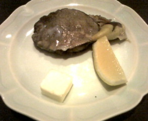 大鰐温泉 南津軽 錦水にて 2009/9/15 添乗員の旅ブログ 本日も鮑が登場しましたこんなに大きな踊り焼きです。でも個人的な意見で今までもそうですが鮑の踊り焼きはどうも苦手です。昨日みたいなちょっとを料理して頂いた方が好きです。食感は最高でしたよ!