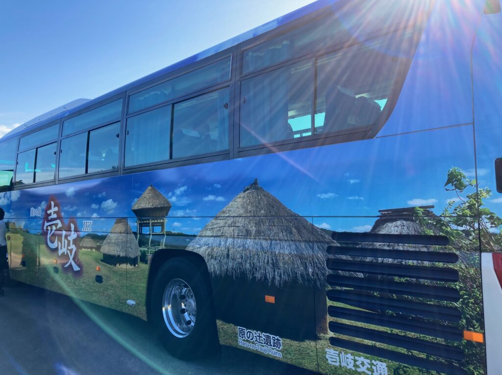 なんと!!!今回乗せていただいているバスのラッピングにも原の辻遺跡が!!