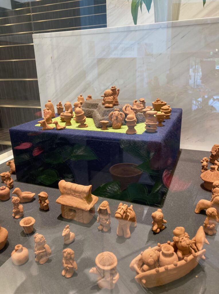 エントランスの土偶たち。よ~く見ると・・・子供たちに大人気のあのパンのヒーローと、そのパンを作るおじさんが!!!