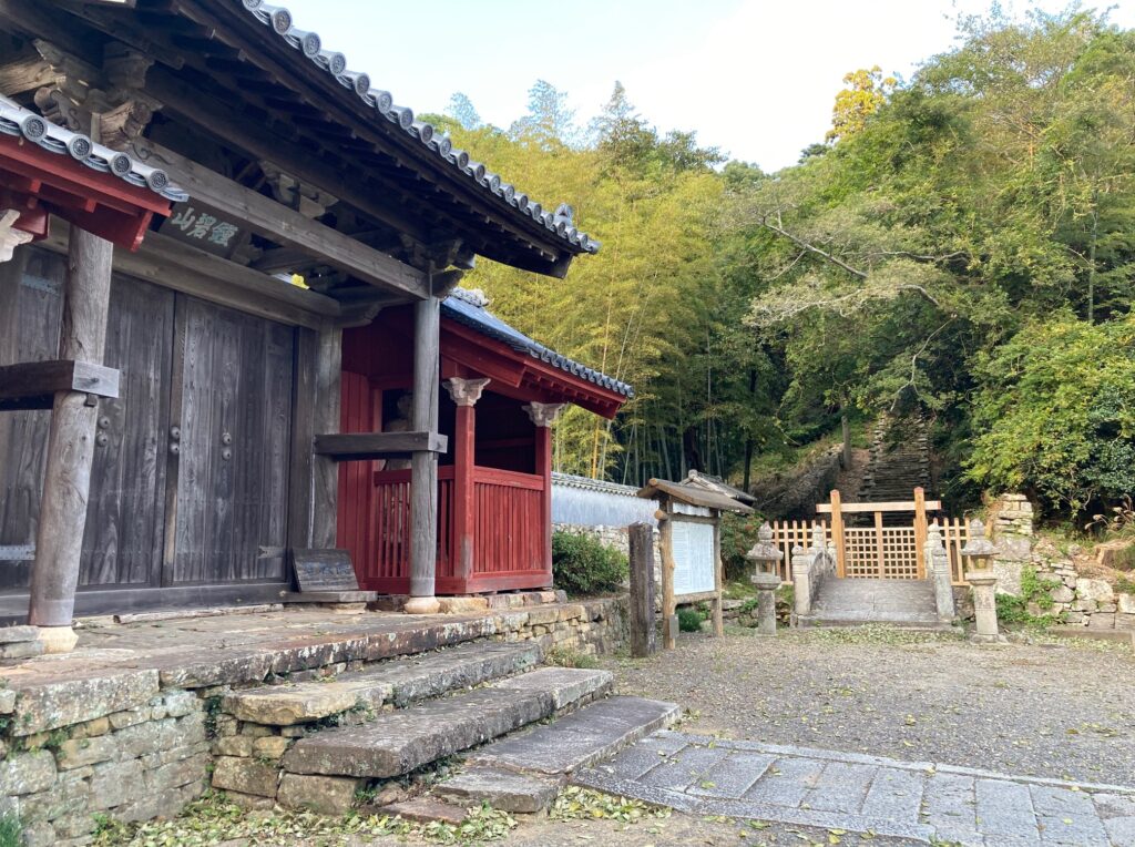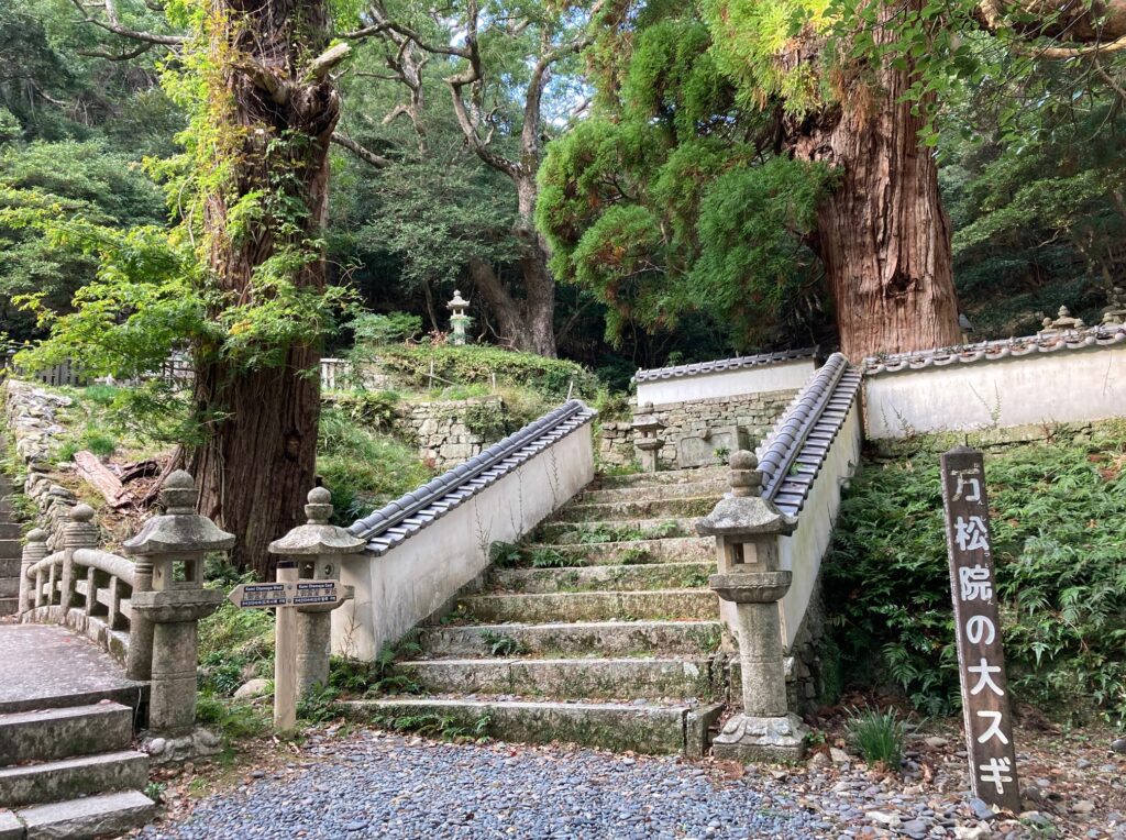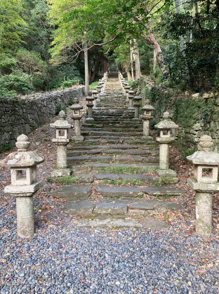 ゲッ!!この階段を上るの?!と思いますが、住職さんが、「思ったより楽に上れるから、せっかく来られたんだからお参りされた方がいいよ」とおっしゃられたので、頑張ってみんなで上りました![]()
