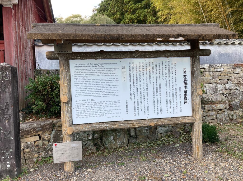 戦国時代末期、秀吉の朝鮮出兵により途絶えた朝鮮と日本の国交を、朝鮮と日本に挟まれながら、命を懸けて国書を改ざんしながら回復させた、対馬藩初代藩主です。ガイドさんによると、そのストレスで48歳という若さで亡くなったとか。確かに、国書を改ざんするなんて大変な罪になりますが、朝鮮と日本の仲を取り持つ為に命を懸けて下さったのですね。