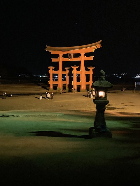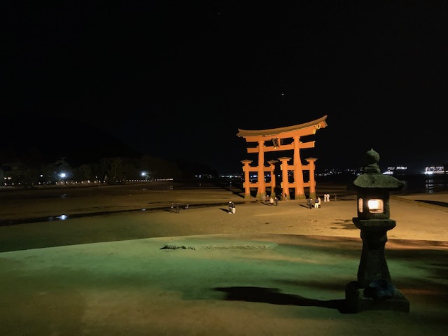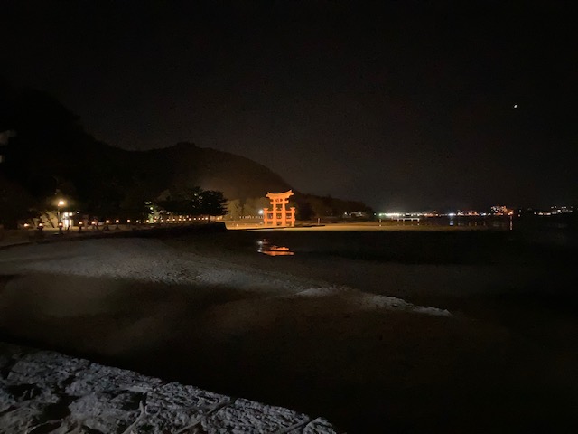 ホテルで夕食後、ライトアップされた大鳥居の見学は各自にて![]()