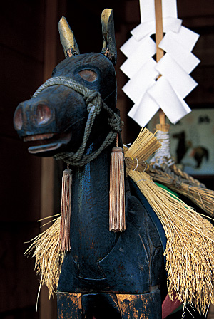 中を覗くと白と黒の二頭の神馬像が安置されており、