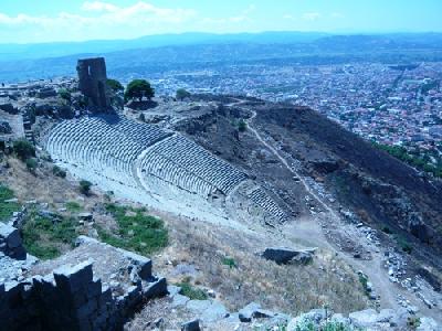 ↑アクロポリスの丘から見下ろす「ベルガマ」の街並み。