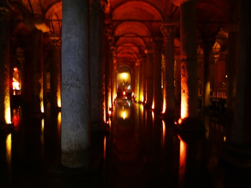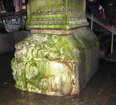 地下宮殿(6世紀に造られた地下貯水施設) 魔除けとして置かれたメデューサの首