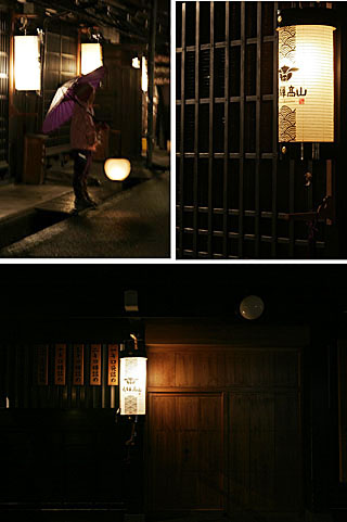東西の通りを境に、提灯の形を楕円と円柱に分け、