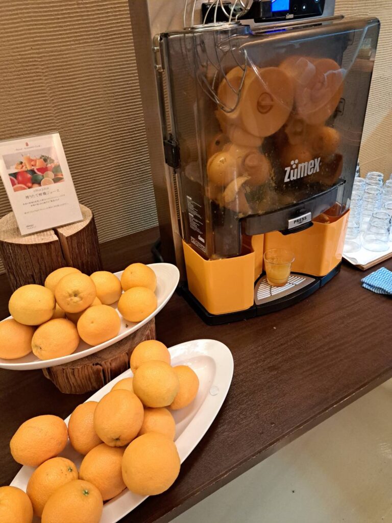 熊野倶楽部の朝食は必ず生オレンジのジュース