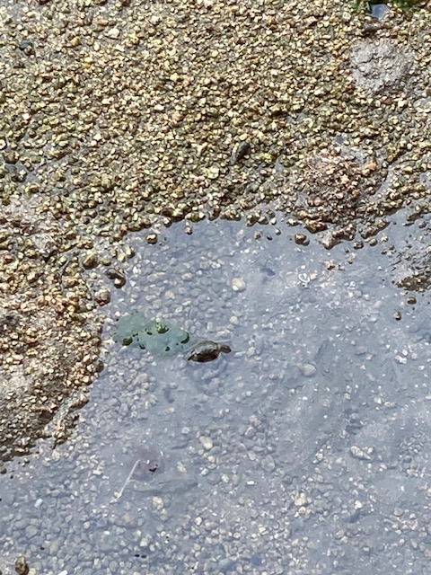 手鏡のように見えるこの池は、鏡の池です。潮が引いてもなぜここに水があるのか、というと、ここから淡水が湧き出ているからとのこと。不思議な池です。