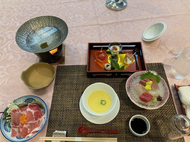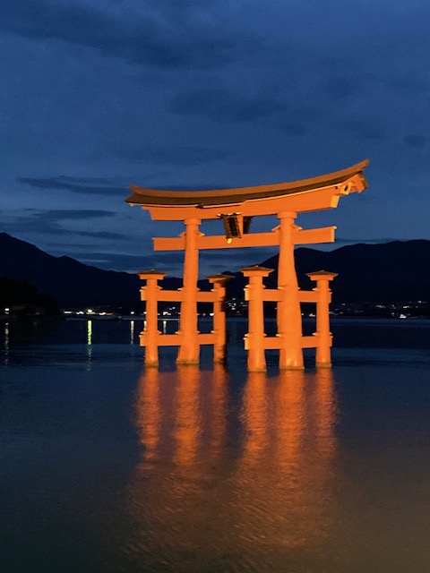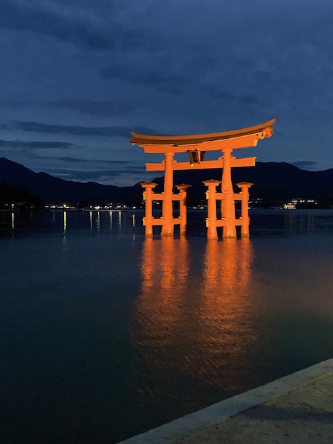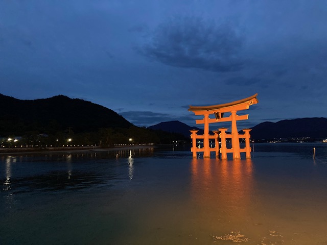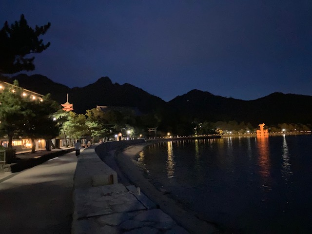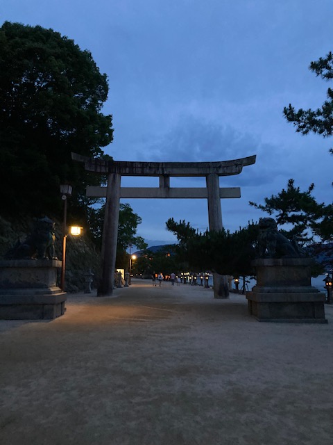 豪華な夕食をいただき、夕食後は鳥居までお散歩![]()