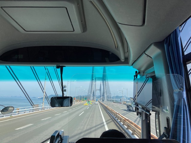 宮島口に到着したら、現地おおすみ観光のバスに乗り、一路しまなみ海道へ
