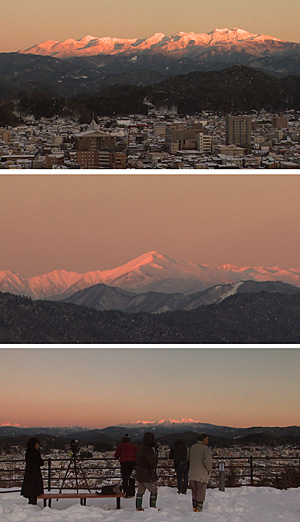 しばらくすると日本海に反射した夕日が再び、飛騨山脈を照らす。