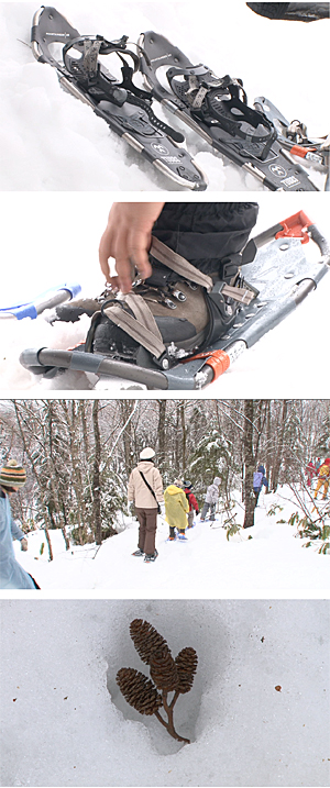 ガイドの楽しい話を聞きながら散策する冬の森の一時間は、