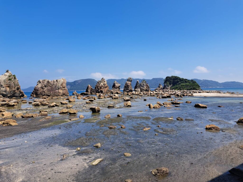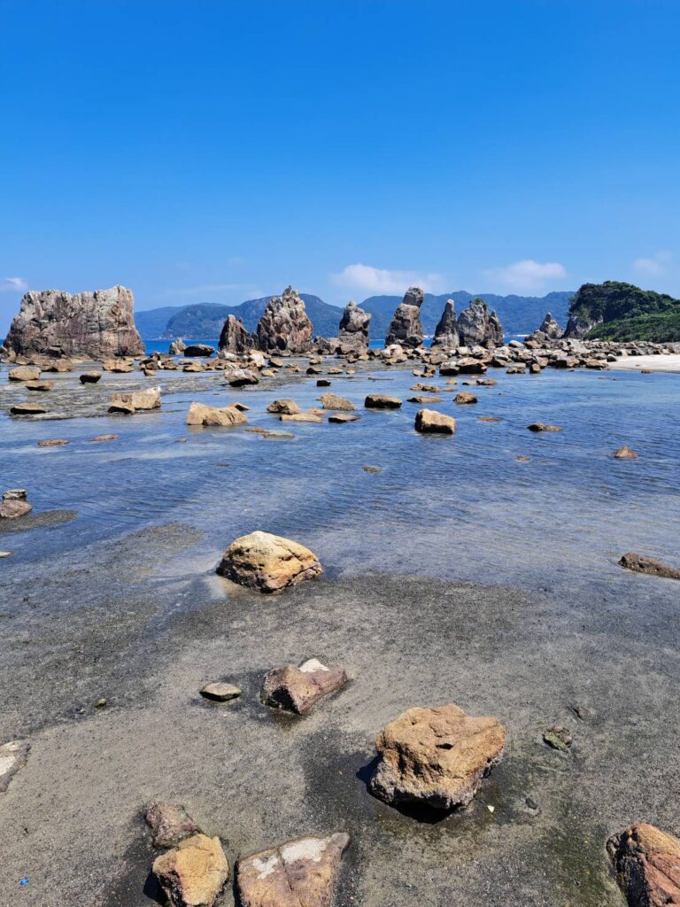 いつもここは潮吹き岩をみて、岩場と綺麗な海を眺めておりますが、実は震えて見ているわたしです(笑)高い所が苦手なんやさ(泣)ひぁーとか叫びながら何ともない顔して白良浜をサプライズで見せてからー海鮮料理食べて橋杭まで岩一気に行きますよ![]()