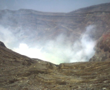 阿蘇五岳の一つの中岳です。天気がよくこんなによく見えるのは珍しいそうそうです。運よくガス注意報も解除になり間近で見学できました。