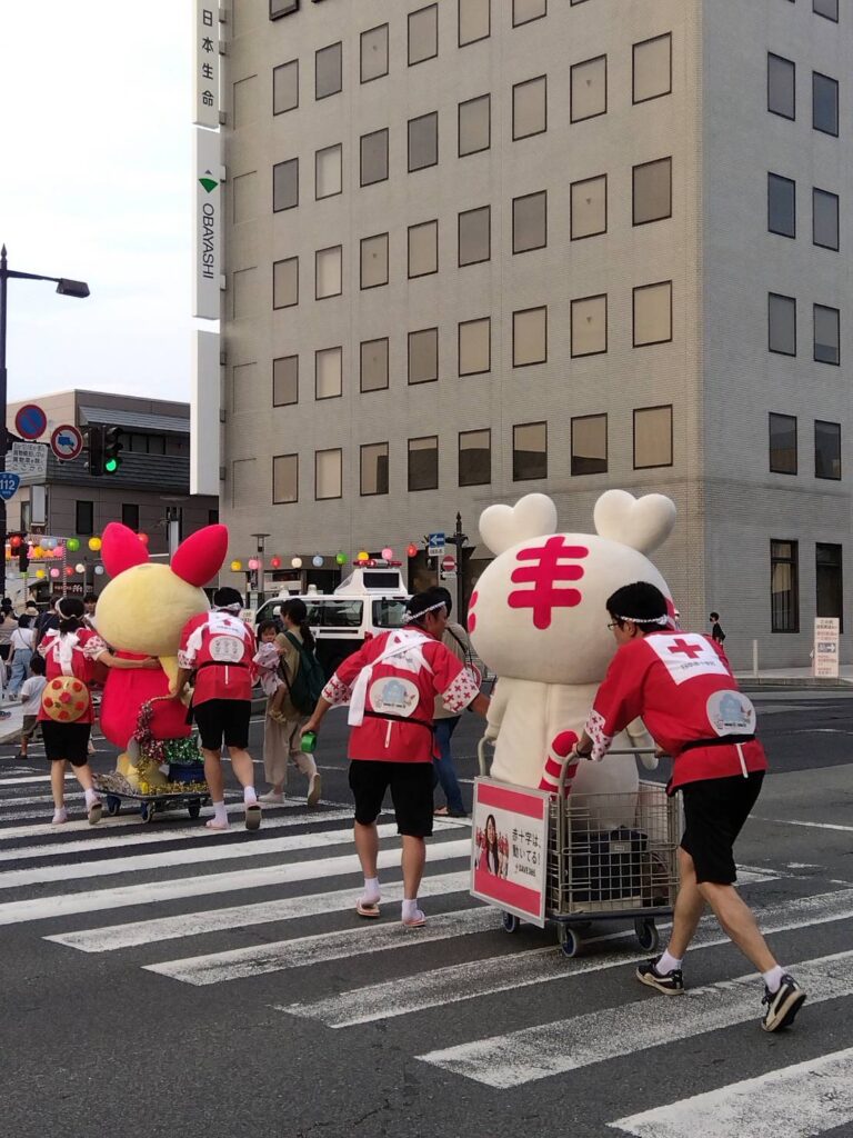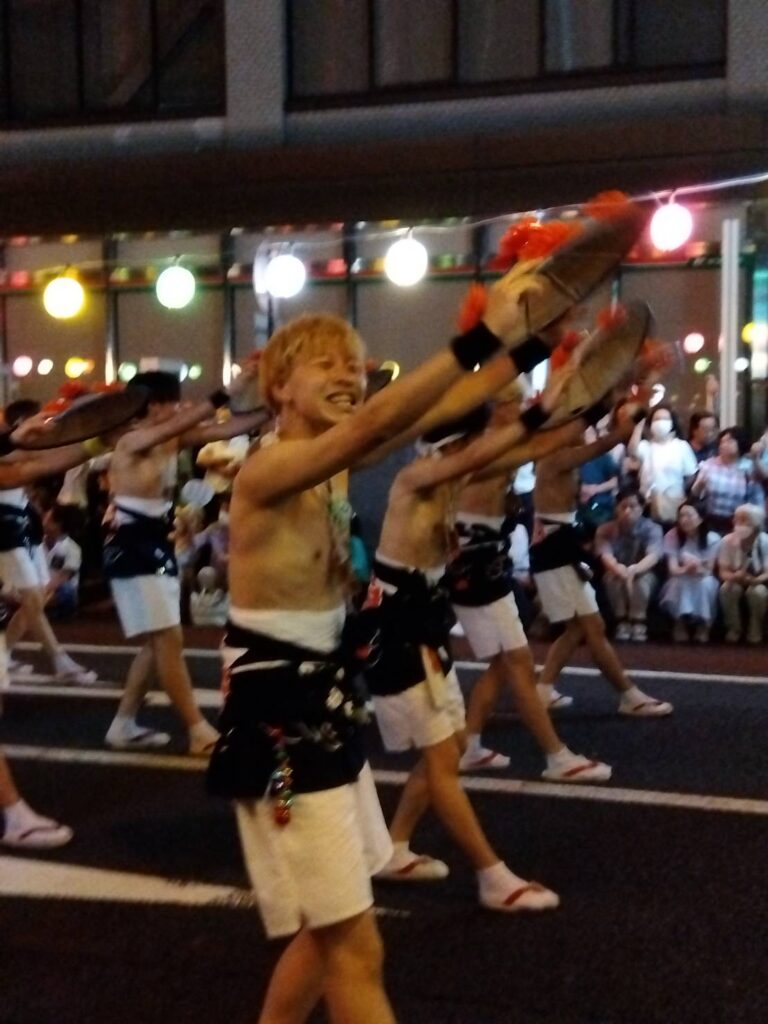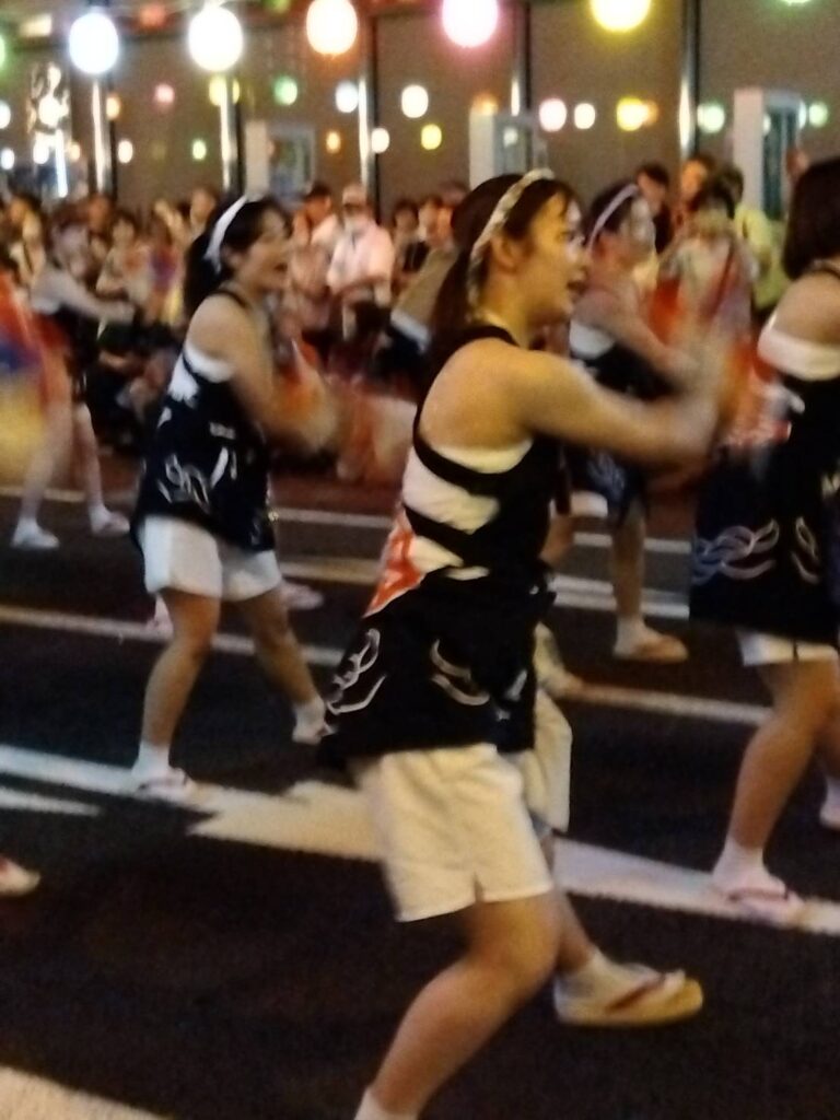 ただ、花笠踊りが進む通りは、歩道があまり広くないので、立ち見になります![]()