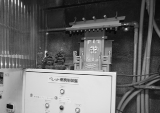 写真の円空像、なんと銭湯のボイラー室の一角に鎮座していた。