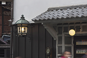 この店の場合、店名が一枚板の看板とガス灯に表記されているが、