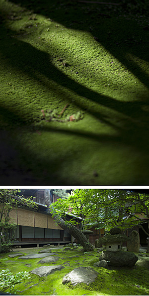 庭木にはいっさい手を加えておらず、苔も当時から生き続けている。