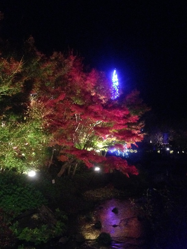 もみじの名所とされる「なばなの里」では、ライトアップされた