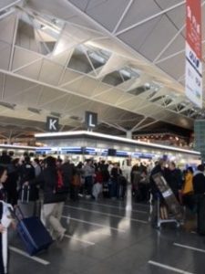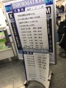 搭乗手続きして来ま〜す😄ってカウンターへ行ったら・・・「現在雪の為欠航の便も出ておりまして、搭乗手続きを全て一時中断しております。」とのこと・・・💦💦💦石垣行きの便は欠航とも飛ぶとも何とも決まらず、カウンター前で足止めを食らいまして・・・😭😭😭