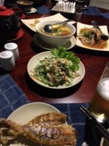 夕食はベトナム料理🍽️おいしいけど量が多すぎて・・・食べきれない量が出てくるので申し訳ない気持ちになります😞