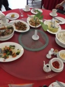 お昼は中華料理です。日本の中華とはまた違う味・・・。最終昼食だから添乗員も一緒に、とお客様よりお誘いいただき、私も一緒に混ぜていただきました😄ありがとうございました😉
