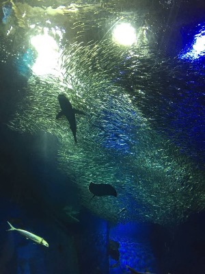 イワシのトルネード!!サメが来ると逃げる。面白い😉ニモもいるはずやけどドリーしか見当たらなかった😓癒しです👌