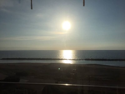 そしてタワー!!乗り物3つも乗換えて弥彦山にて佐渡島を望む😊
