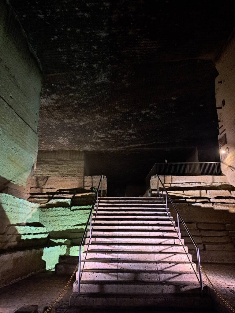 ここは大谷石の産地で、軽石に似たマグネシウム入りの石を外壁や土蔵に使っていました。その採石跡地を資料館にして見学させてもらっています。