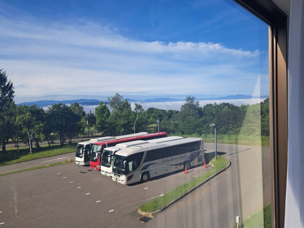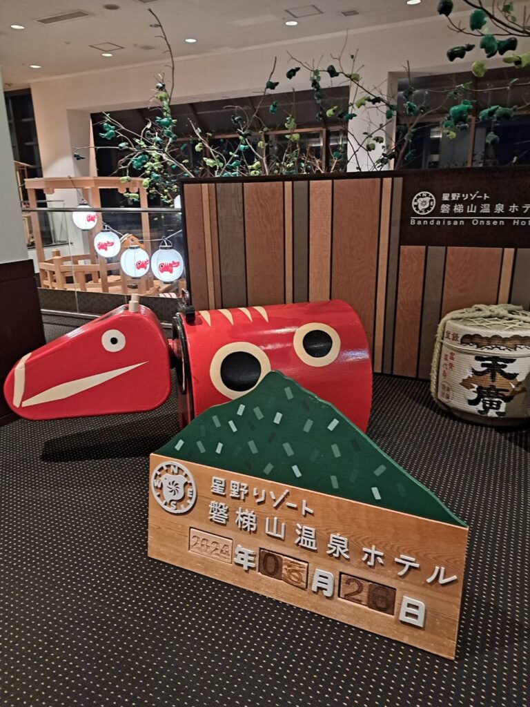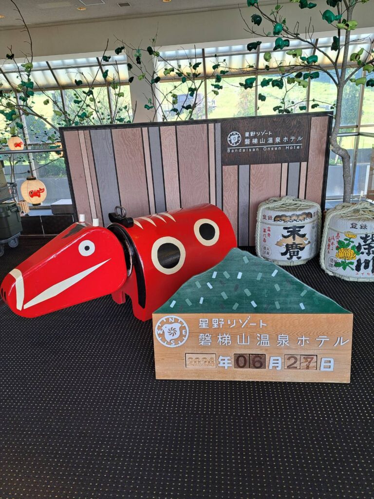 元々高原のスキー場なので磐梯山とスキー場&あかべこで出迎えでした![]()