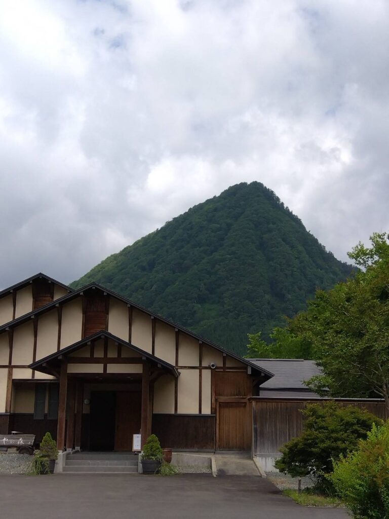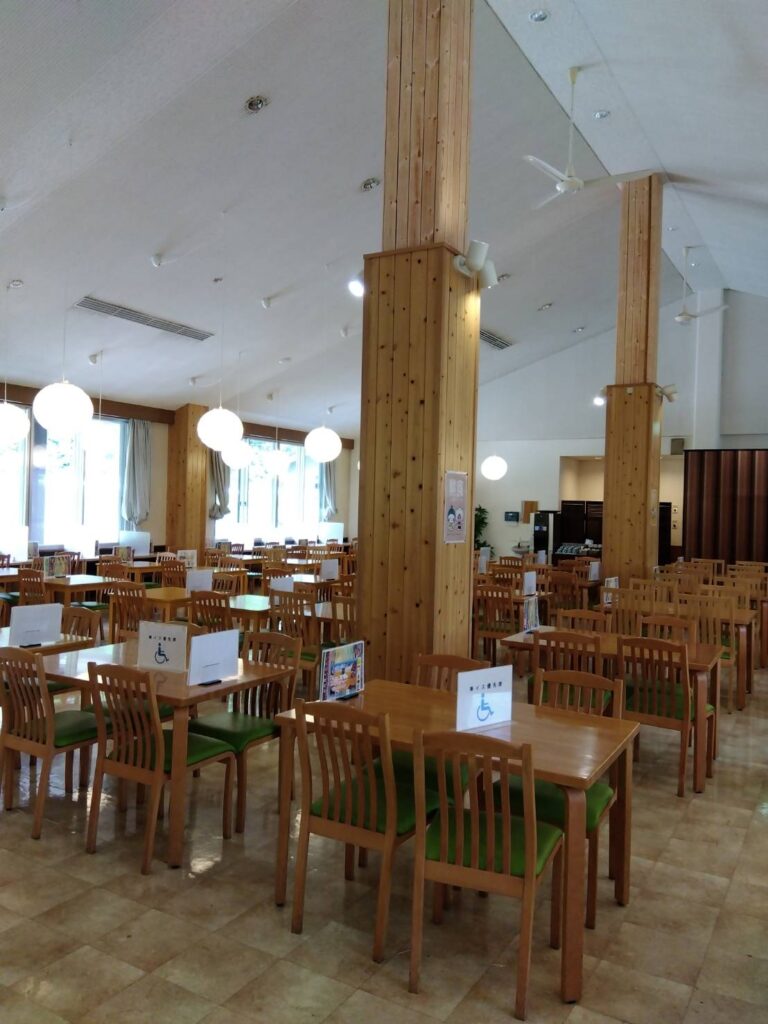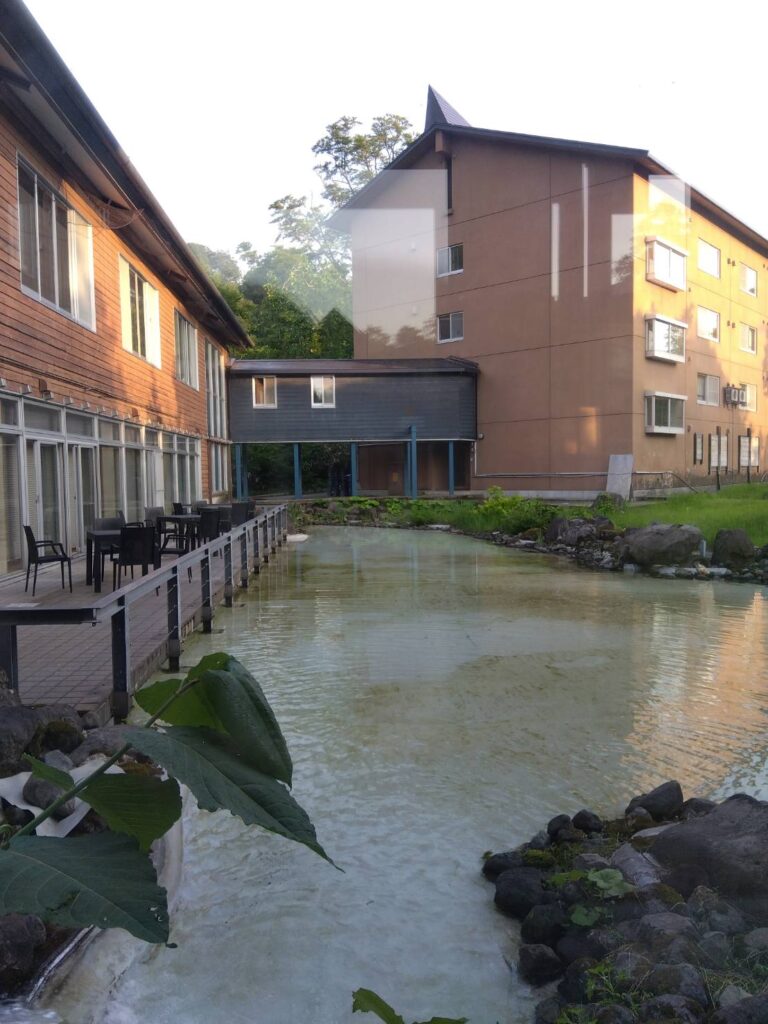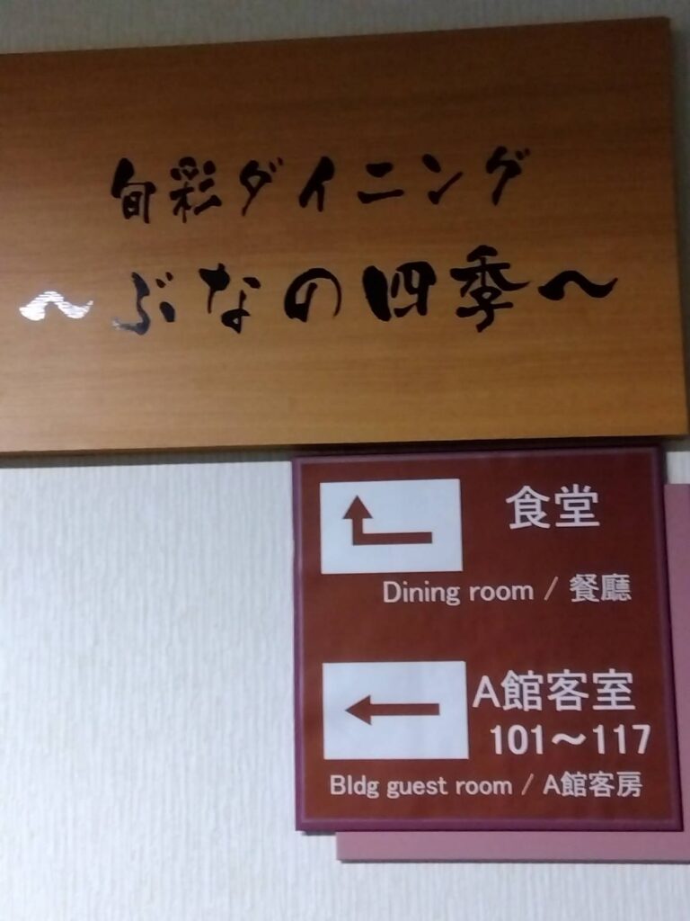 2階の窓は夜食、朝食の会場「レストランぶなの四季」