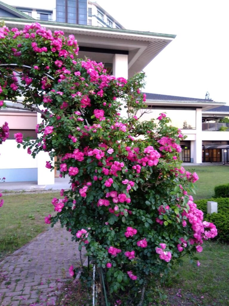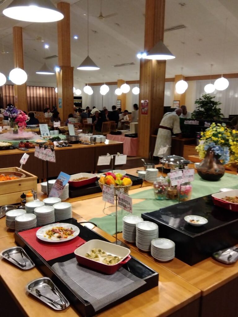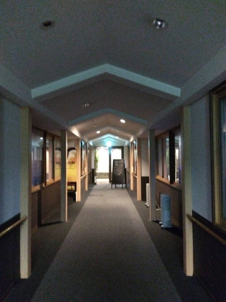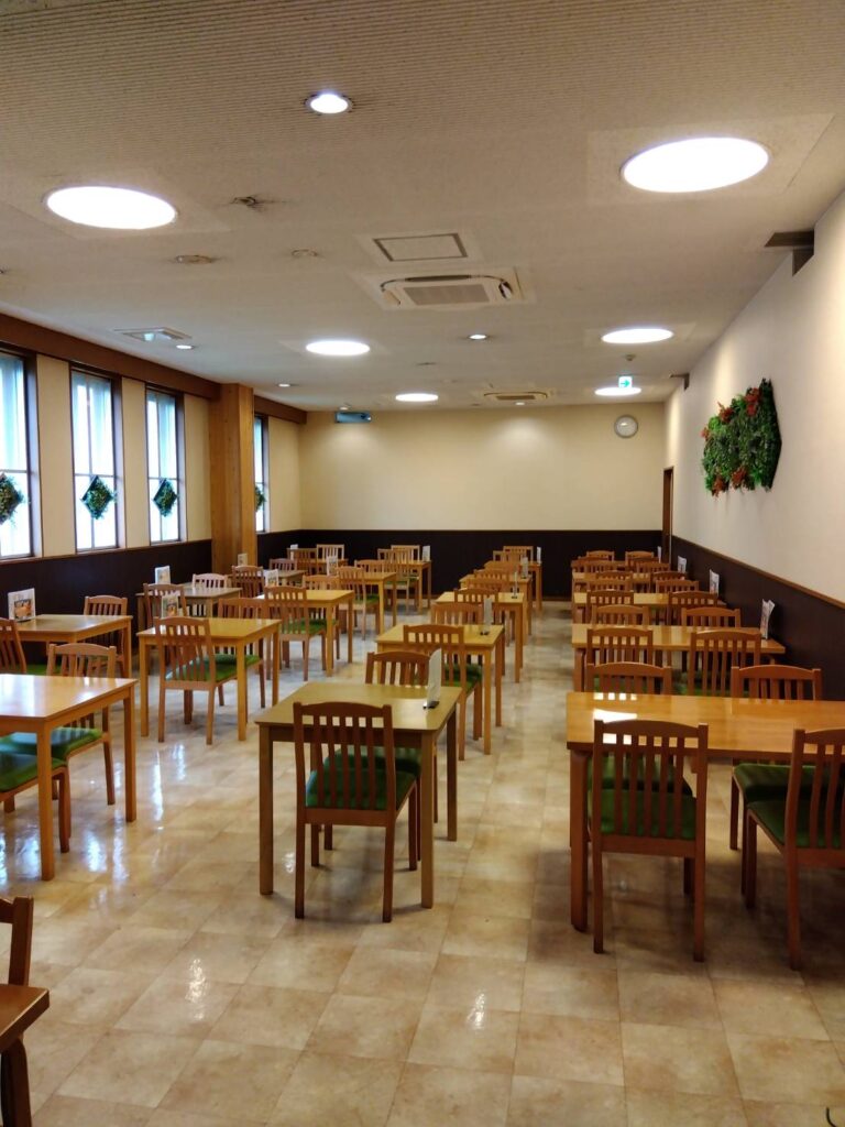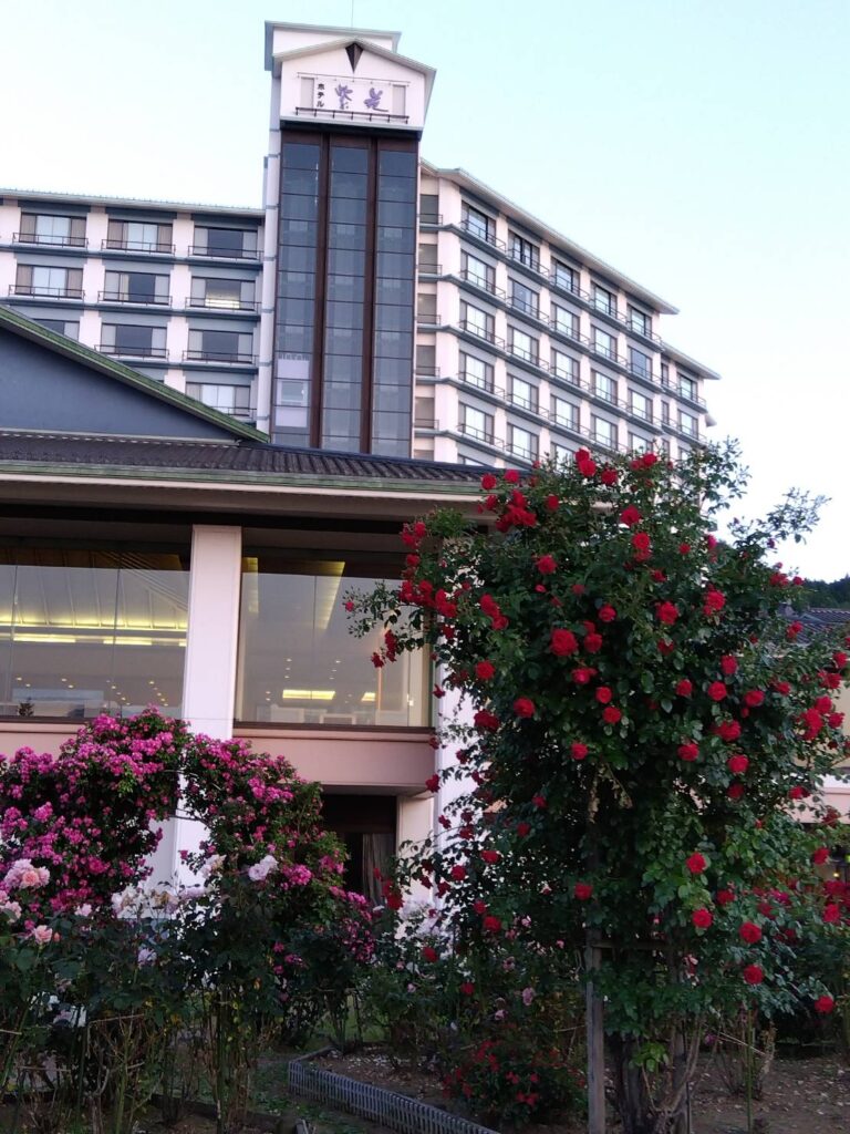 2階の窓は夜食、朝食の会場「レストランぶなの四季」