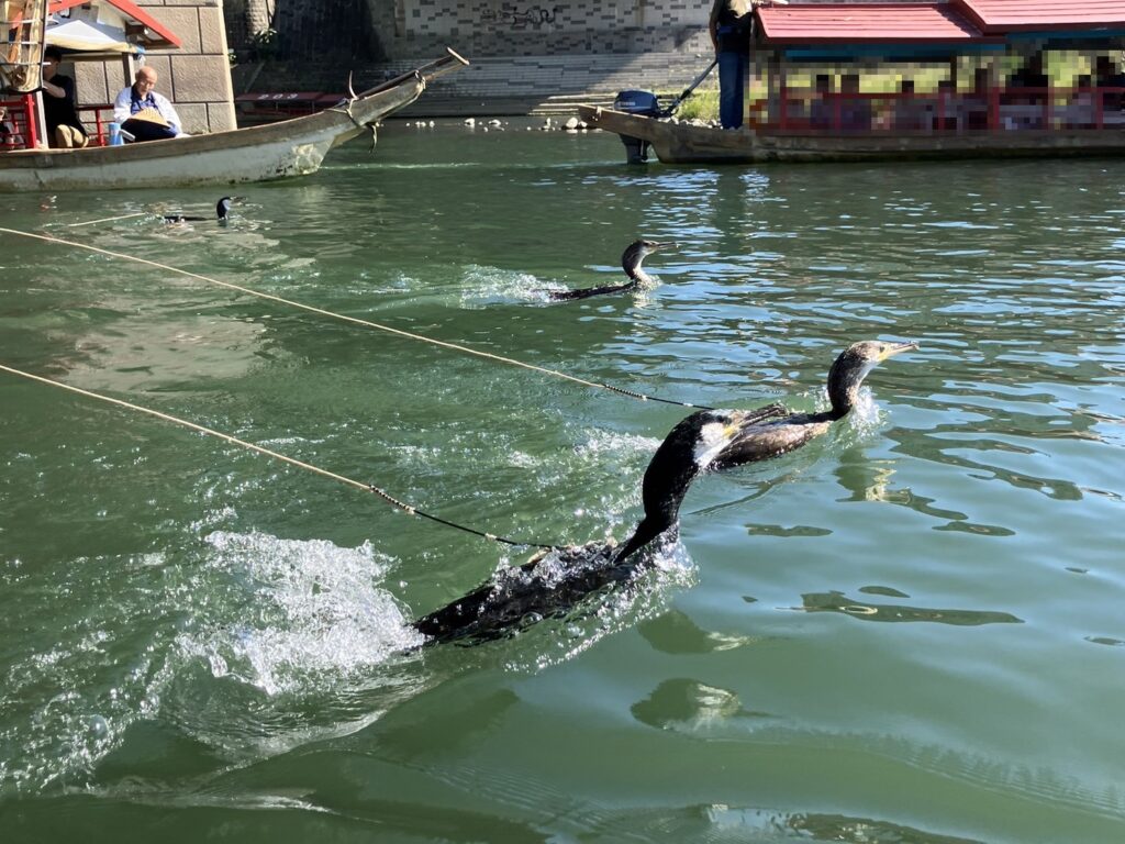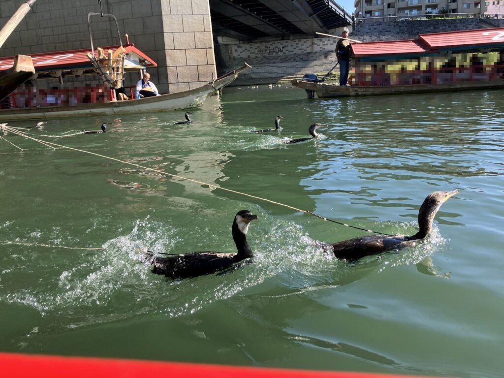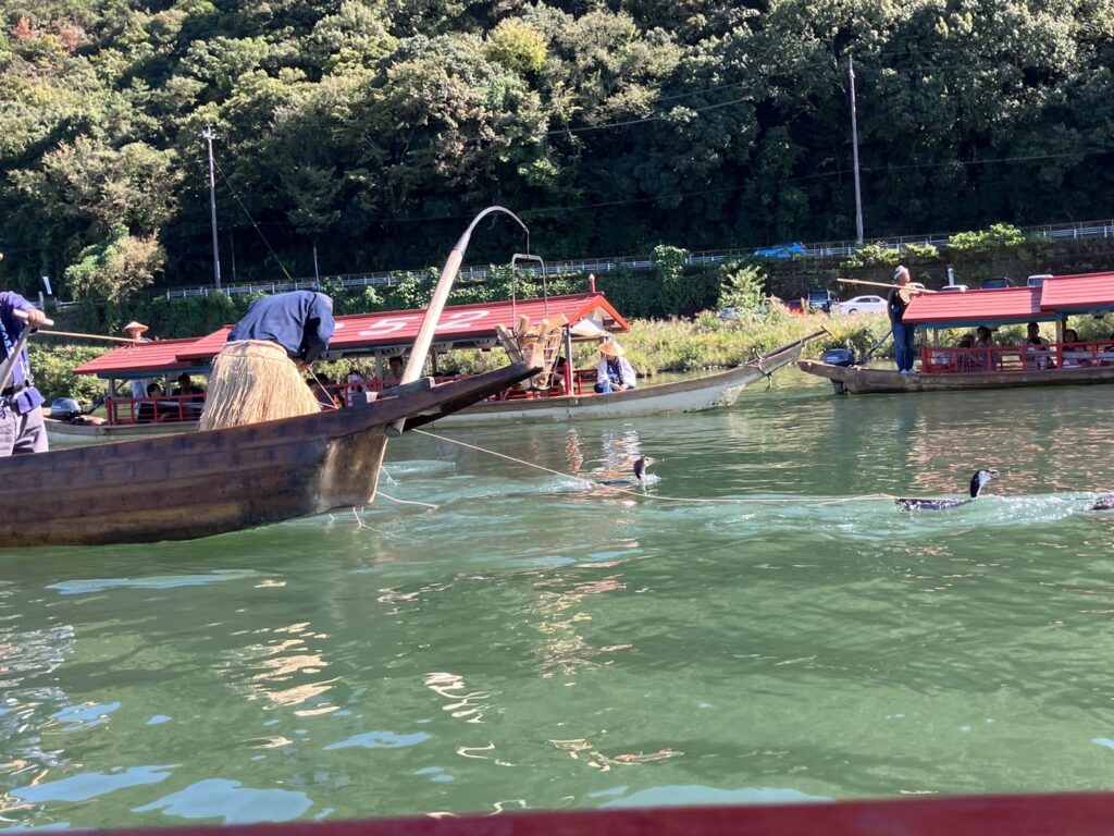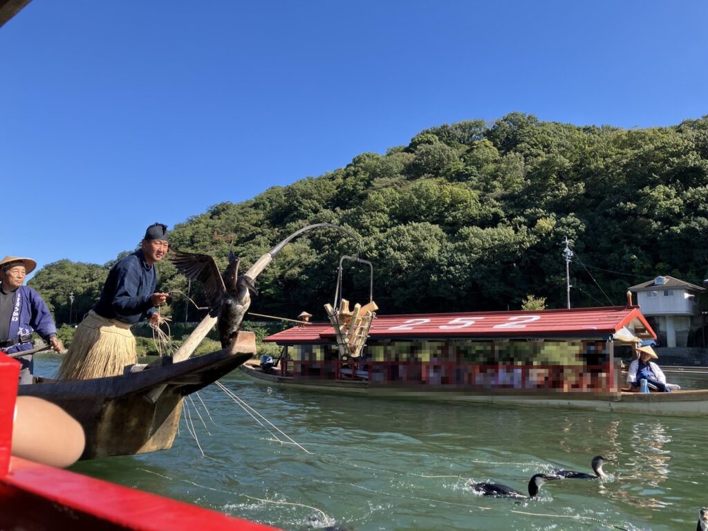 木曽川鵜飼と犬山城下町 日帰り 2024/11/15 添乗員の旅ブログ 2024年10月12日(土) 木曽川観光鵜飼へ鵜飼舟に乗り込み、いざ出発!!犬山城を川から眺めます 水がとても近い!! 鵜たちが頑張っていました鵜飼舟でお弁当をいただき、鵜飼を観たら犬山城下町散策です 天守閣は60分待ち!!!約2時間散策時間あるとはいえ、これはきつい 人はそんなにでした2020、これが最後かもとのこと。お世話になりましたお天気にも恵まれ、楽しく過ごせましたありがとうございました