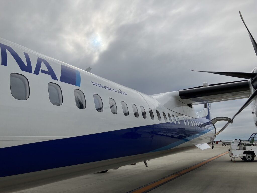 プロペラ機に乗っていざ鹿児島空港へ![]()