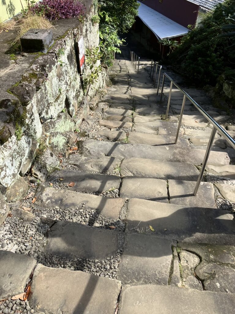 階段の上り降りを考えたら、足に自信がない方はタクシーを使って一般の駐車場まで行くと、平坦な道のりで往復できます。