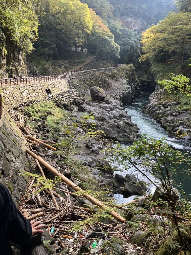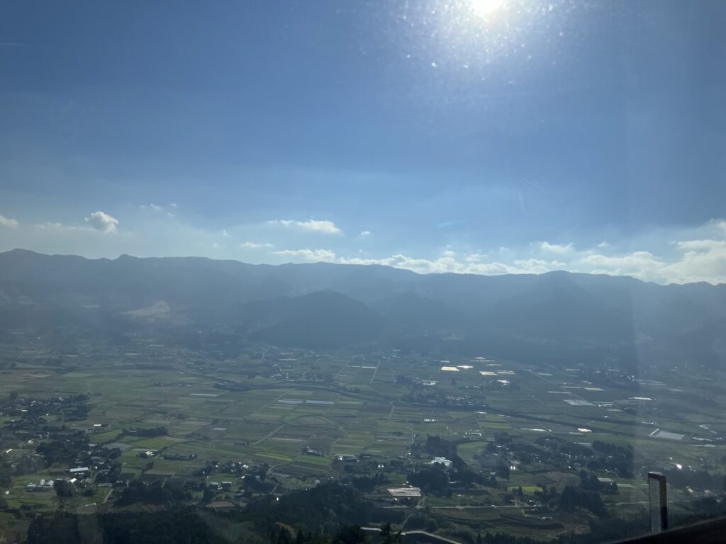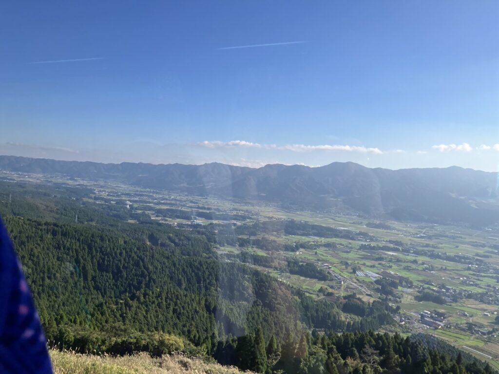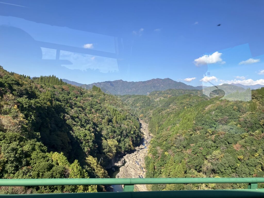 本日貸切になっていました。10月、11月は団体の予約が多くてほぼ毎日貸切なんだとか。国見大橋から絶景を車窓にて![]()