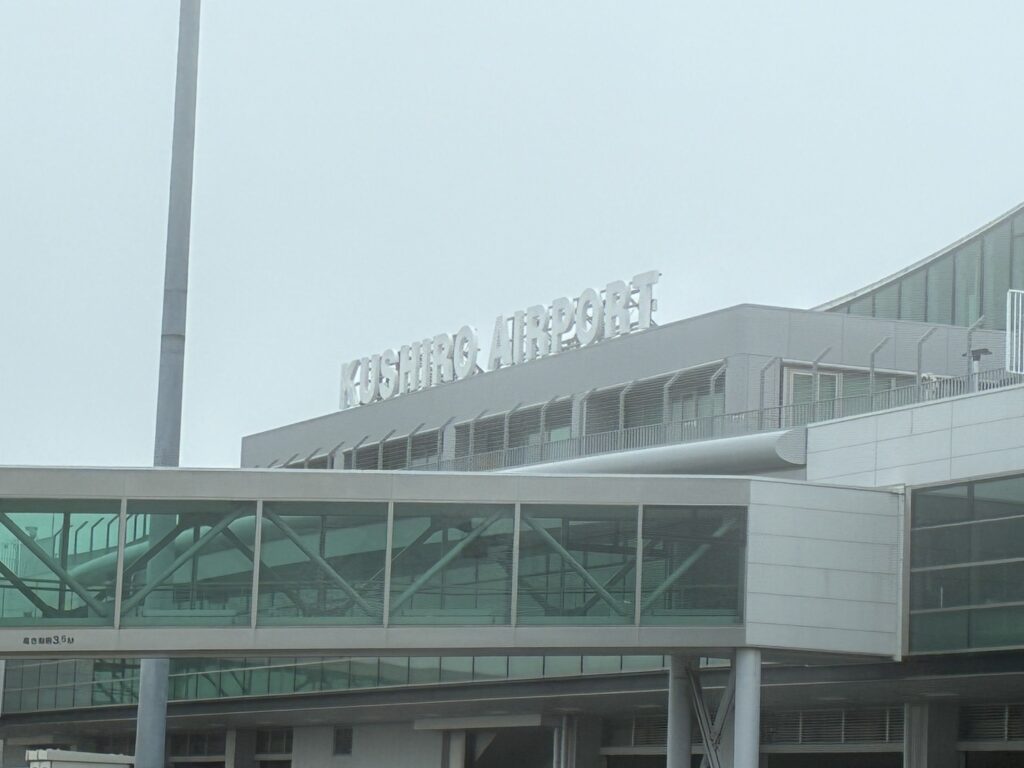 見事に霧の釧路空港🛬現地網走観光交通さんのバスに乗り、本日の宿泊は阿寒湖温泉♨️あかん遊久の里鶴雅🏨