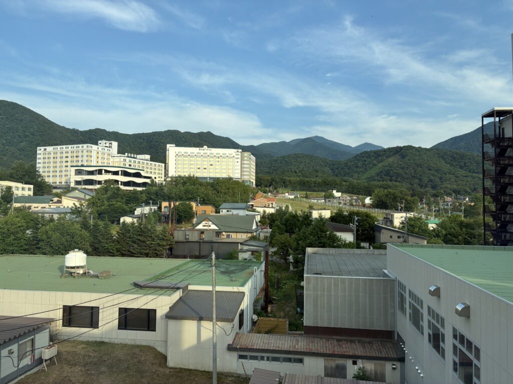 なんと!!ここまでずーっと真っ白けだったのに、おひさまが差して来ましたよ!!ホテルのスタッフの方が喜んで、やまびこツアーのお客様の夕食のお席を最上階レストランの景色の良い席にセットして下さいました!!が、直射日光が眩しい&暑い・・・☀️なかなか難しいですね😓
