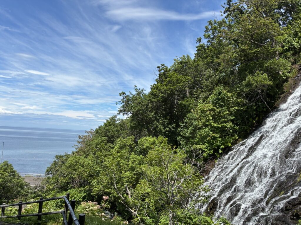 道の駅うとろ・シリエトクでトイレ休憩の後はすぐそこのオシンコシンの滝へ🚌