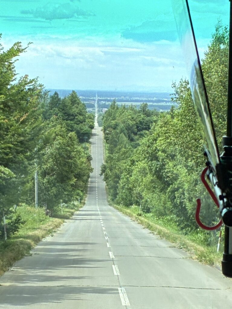これは天に続く道ではありません。が、北海道にはこういうまーっすぐなながーい道がたくさんあって、広いことが分かります。